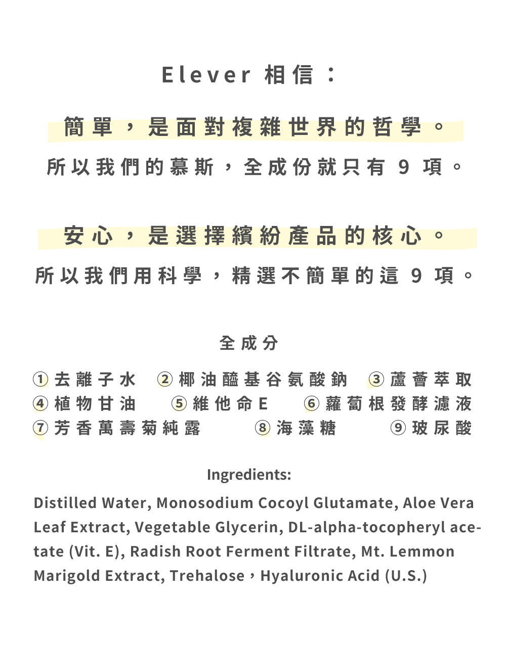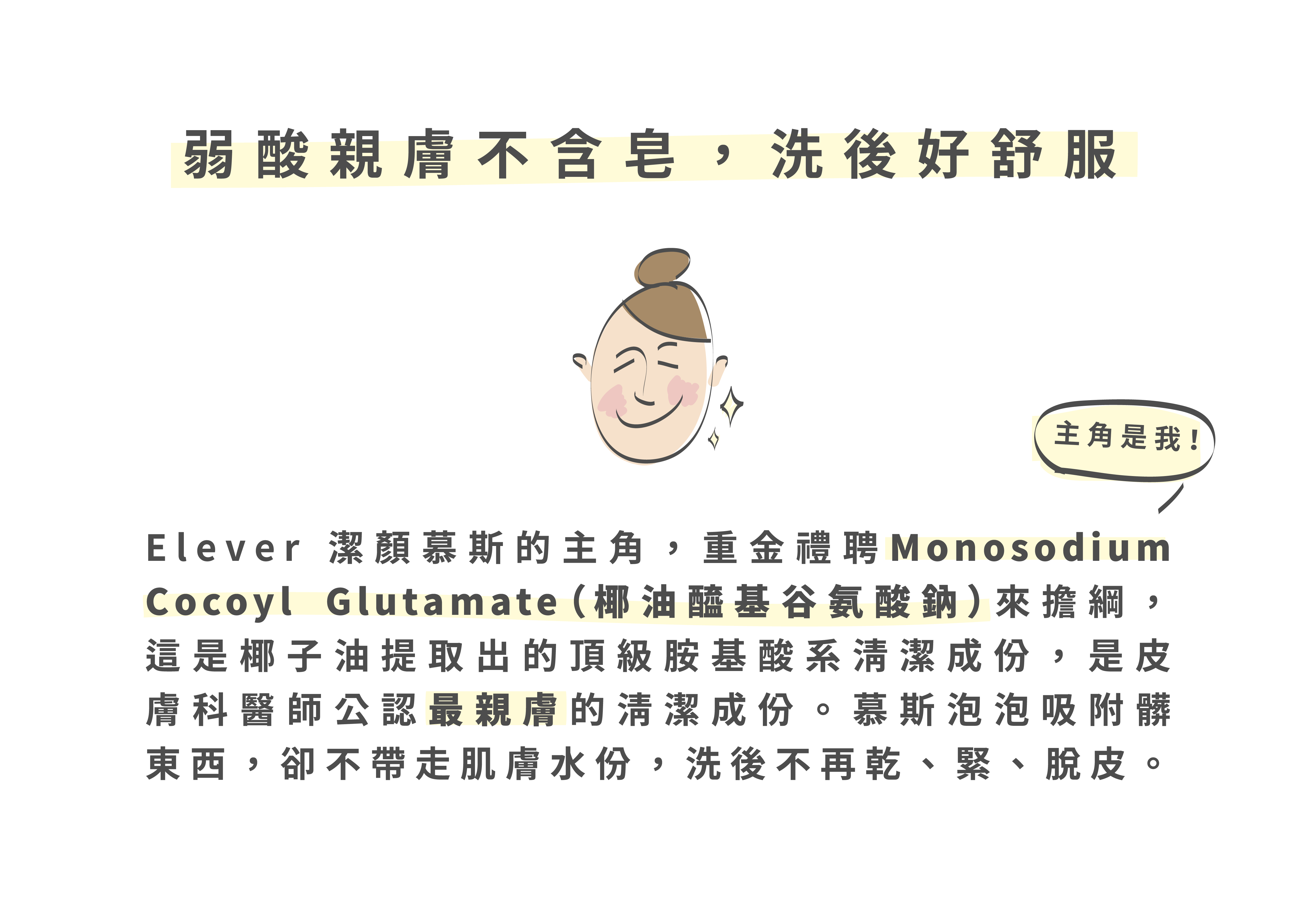 用好的清潔成份,安心清潔、同時保水不緊繃