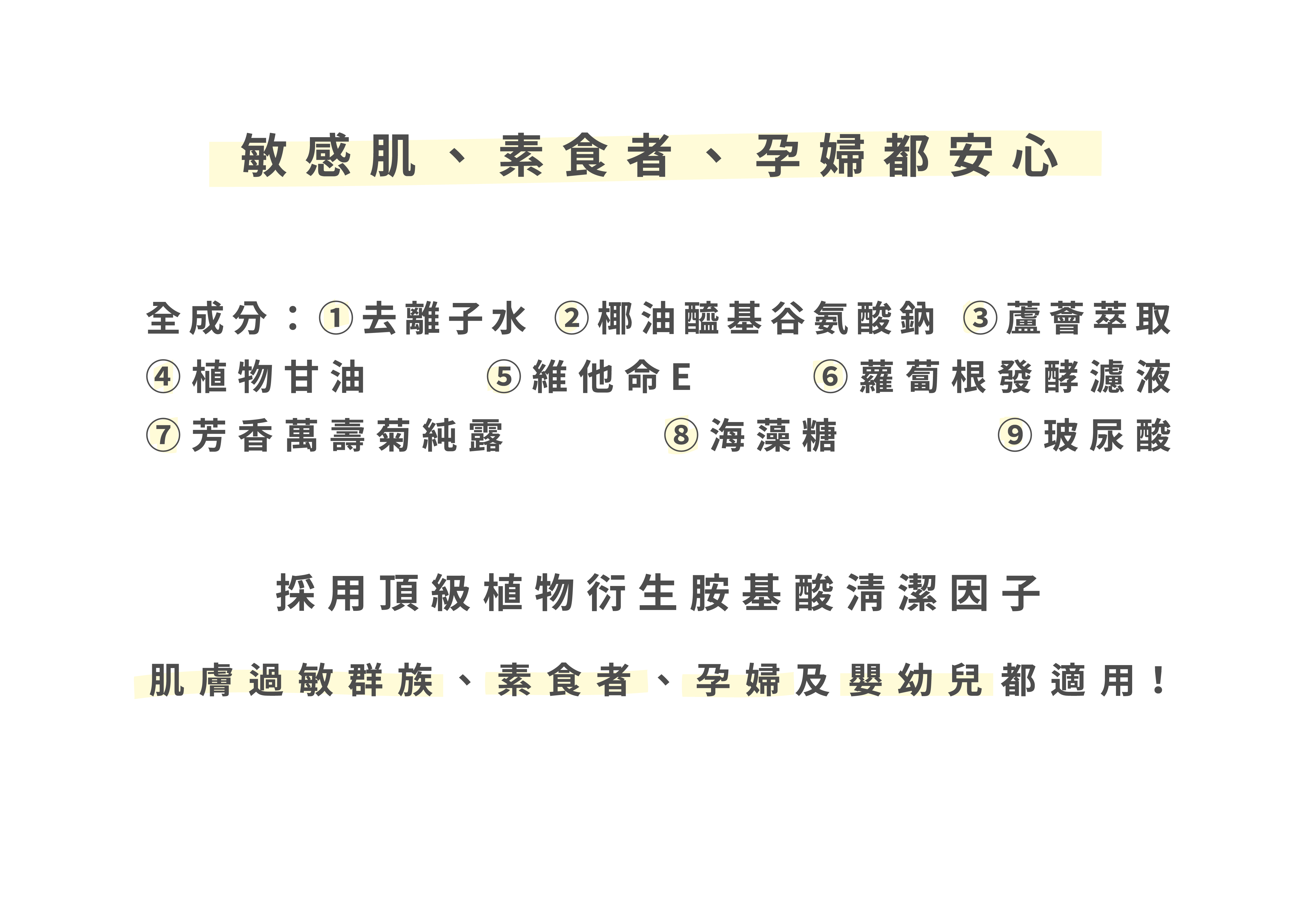 ● 天然抑菌、零香料、零皂鹼